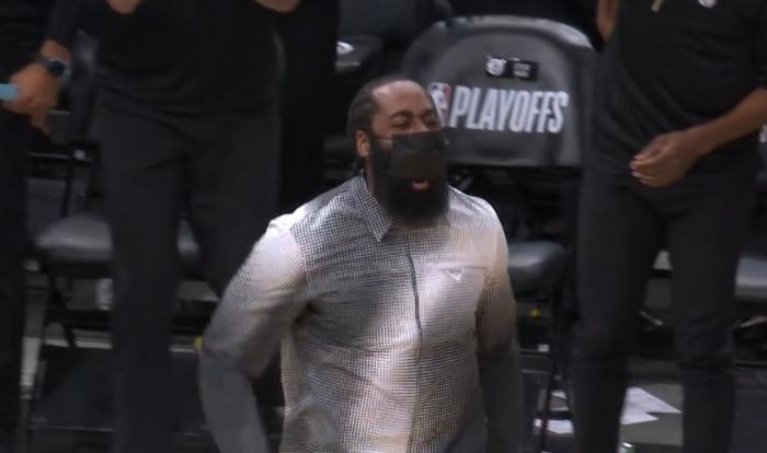 上半场,哈登疯狂庆祝十分抢镜,另外要说的是杜兰特惨遭PJ-塔克打脸以及挠眼,当时杜兰特眯着眼十分难受,不过裁判没有升级判罚,这只一次普通犯规。