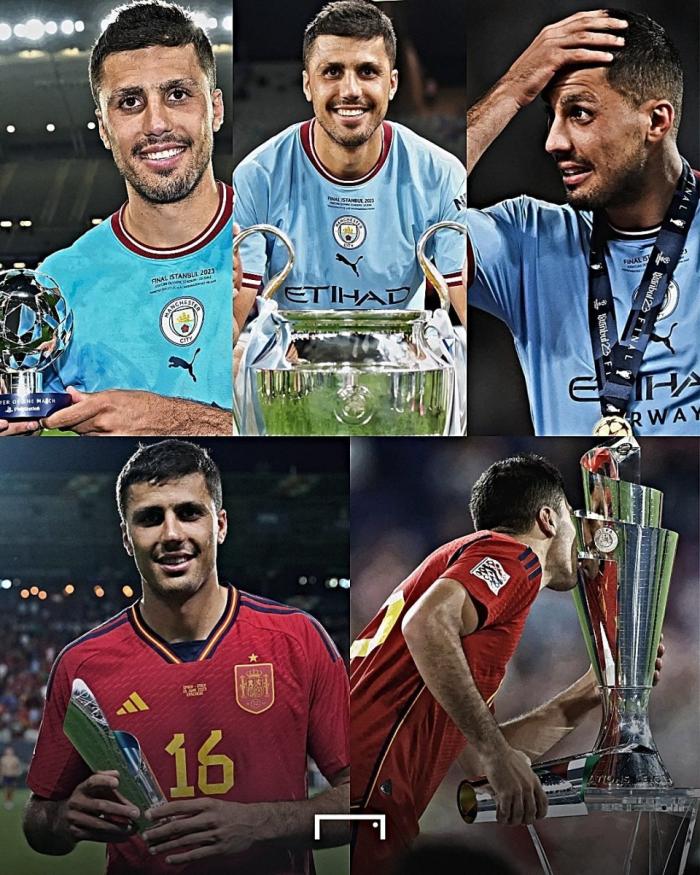 而在西班牙国家队,罗德里本赛季则斩获了欧国联冠军。4个冠军在手,还握有欧冠和欧国联中两个赛事最佳球员的沉甸甸奖项。