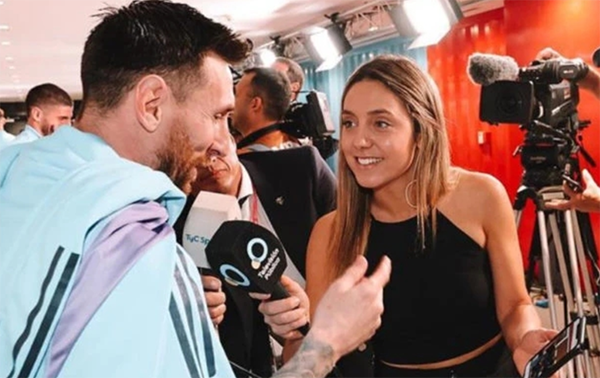 后期梅西和这位女记者互动的照片传来,其实主要是工作上的接触,有梅西被Sofía Martinez采访、合影,期间一段梅西采访的时候“含情脉脉”的看着Sofía Martinez,引得不少人的猜测。