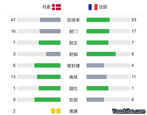 第39分钟,丹麦右侧角球机会,后点丹麦球员得球头球横传中路,达姆斯高回做,跟进的奥尔森左脚凌空抽射得手,丹麦2-0法国。