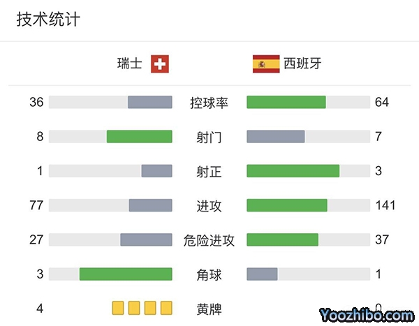 全场比赛结束,西班牙客场1-0小胜瑞士。