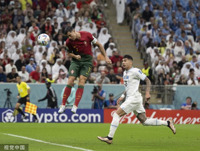 在葡萄牙2-0击败乌拉圭的比赛下半场,第54分钟,B费在前场左侧拿球后,一脚挑传,C罗高高跃起头球攻门,皮球直接飞入球门,葡萄牙成功打破僵局。葡萄牙破门后,C罗激动张开双臂庆祝,包括他自己在内的所有人,都认为这就是他的进球。