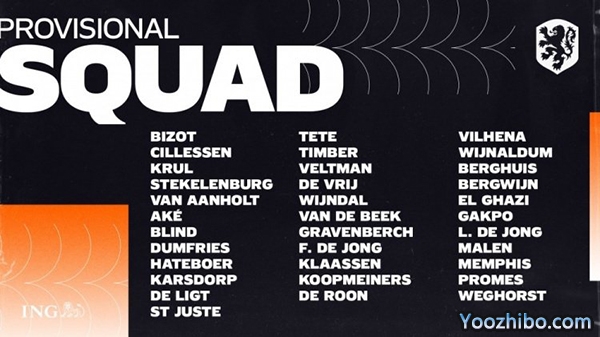 后卫:范安霍尔特(水晶宫)、阿克(曼城)、布林德(阿贾克斯)、邓弗里斯(埃因霍温)、德利赫特(尤文)、尤里恩-廷伯(阿贾克斯)、维尔特曼(布莱顿)、德弗赖(国米)、温达尔(阿尔克马尔)