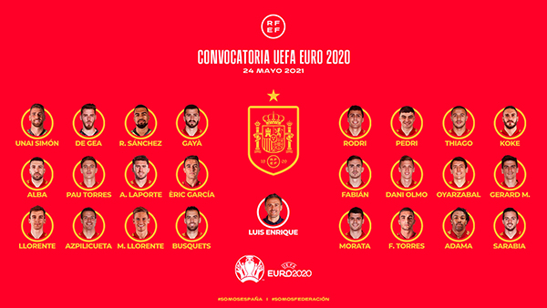 后卫:加亚(瓦伦西亚)、阿尔巴(巴塞罗那)、保-托雷斯(比利亚雷亚尔)、拉波尔特(曼城)、埃里克-加西亚(曼城)、迭戈-略伦特(利兹联)、阿斯皮利奎塔(切尔西)、马科斯-略伦特(马德里竞技)