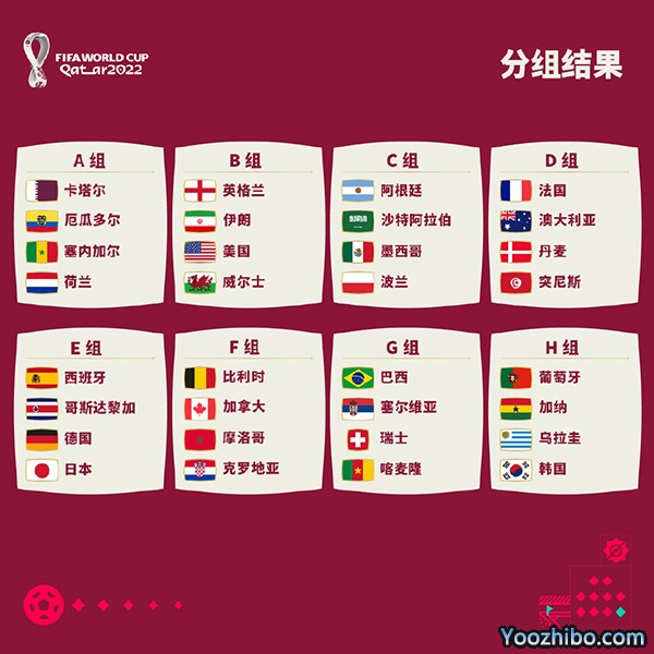| 2022卡塔尔世界杯小组赛分组名单 | |||||||