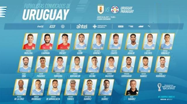 附乌拉圭世预赛大名单: