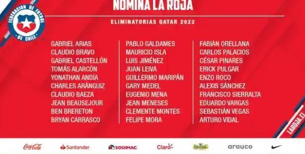 中场:阿拉尔孔(智甲-奥希金斯)、巴埃萨(智甲-托卢卡体育)、加德尔斯(阿超-萨斯菲尔德)、路易斯-希门尼斯(智甲-巴勒斯坦人)、梅德尔(意甲-博洛尼亚)、埃里克-普尔加(意甲-佛罗伦萨)、比达尔(意甲-国际米兰)、阿朗吉斯(德甲-勒沃库森)、胡安-勒瓦(智甲-天主教大学)