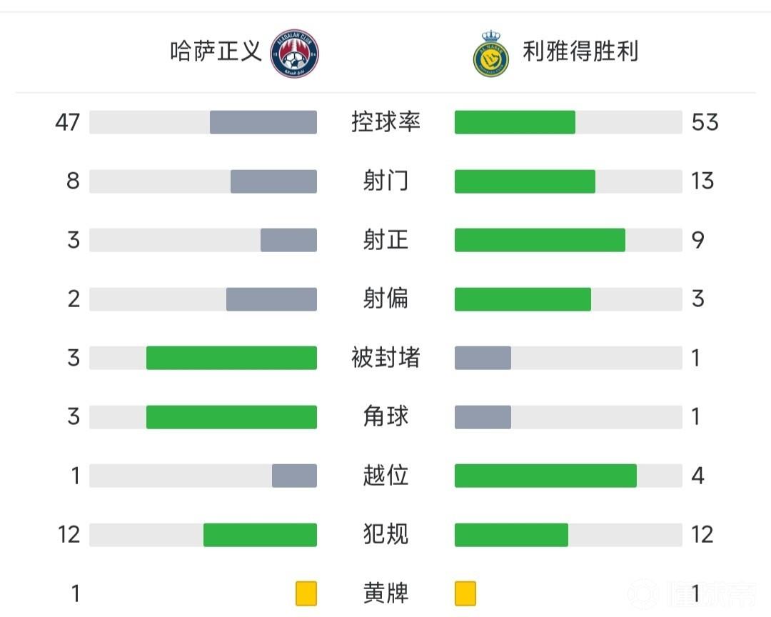 最终利雅得胜利客场5-0大胜哈萨正义。