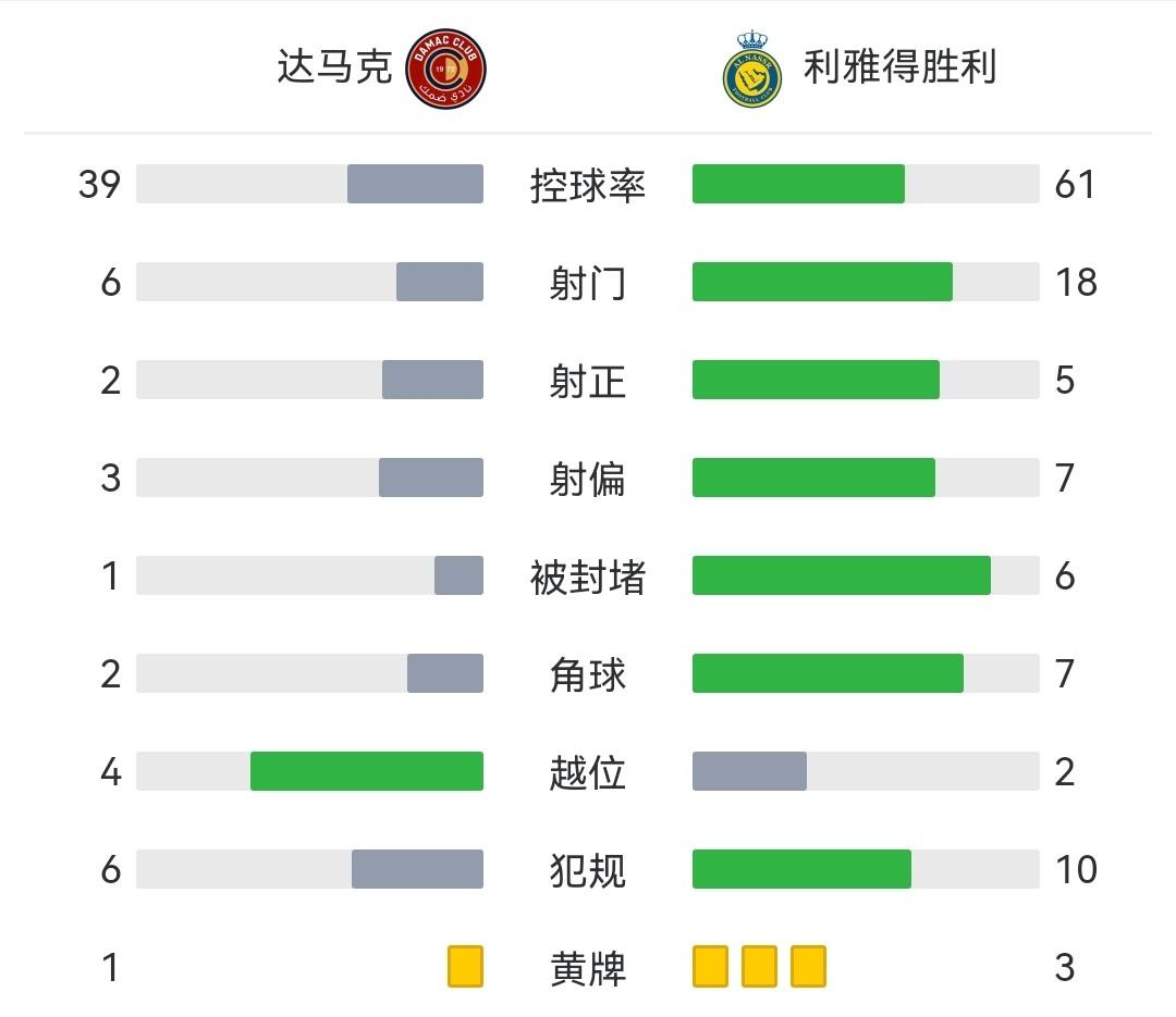 全场比赛结束,利雅得胜利3-0击败达马克。