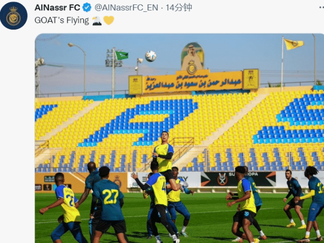 训练中的C罗展现出了不俗的状态,他在禁区起跳争抢头球,高度直接吓坏了一旁的队友,他没有想到37岁的C罗起跳高度居然这么高。利雅得胜利官推晒C罗争顶照,配文盛赞:“历史第一起飞”