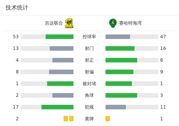 吉达联合首发:34-格罗赫、4-奥马尔-豪萨维、5-路易斯-费利佩、12-扎卡里亚-豪萨维、13-山凯蒂、8-法比尼奥、16-加姆迪、77-阿姆里(45'52-哈吉)、10-科罗纳多(84'24-阿布德)、99-哈姆达拉、9-本泽马(36'70-哈伦-卡马拉)