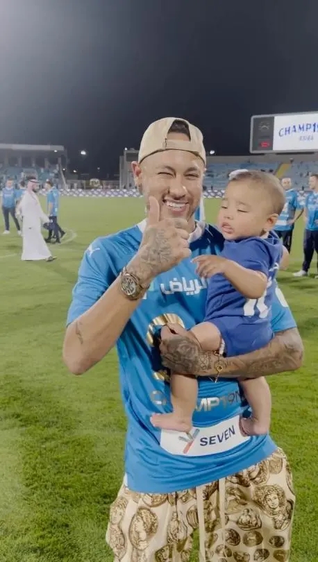 360直播讯 沙特联第31轮,新月击败哈森姆,提前3轮夺得联赛冠军。仍在恢复的内马尔也来到现场,与球队一同庆祝夺冠。