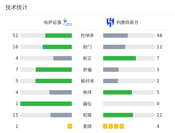 第3分钟,多萨里沿着底线突破时被拉倒,主裁判吹罚点球。第5分钟,米特洛维奇操刀主罚点球命中,利雅得新月1-0领先哈萨征服。