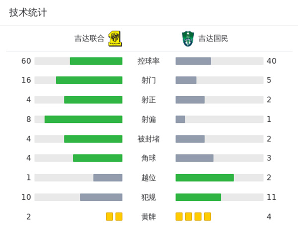 吉达国民出场阵容:16-爱德华-门迪、27-马拉希(74’46-哈默德)、3-伊巴涅斯、37-辛迪、15-阿马尔(60’31-巴洛巴德)、29-马吉哈德(60’8-纳贝特)、79-凯西、24-维加(87’30-若哈尼)、7-马赫雷斯、10-菲尔米诺、20-布拉伊坎(87’19-拉希迪)