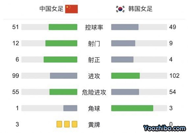 韩国女足首发:18-金正美、2-秋孝柱、4-沈藇妍、6-任善株、8-赵昭贤、10-池笑然、11-崔宥莉、13-李金玟、17-李永周(81'16-张瑟琪)、20-金惠利、23-孙化然
