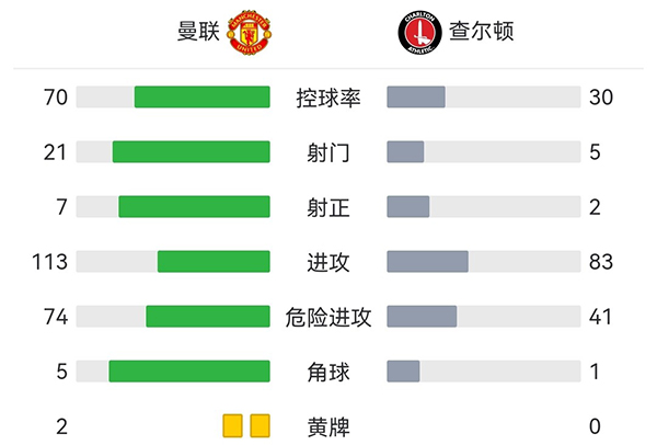 全场比赛结束,最终曼联3-0查尔顿成功晋级四强。