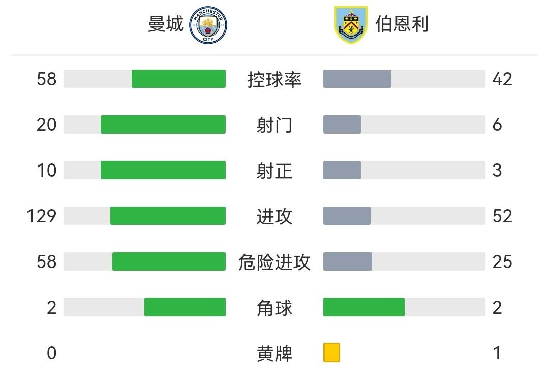 最终曼城主场6-0大胜伯恩利,晋级足总杯四强。